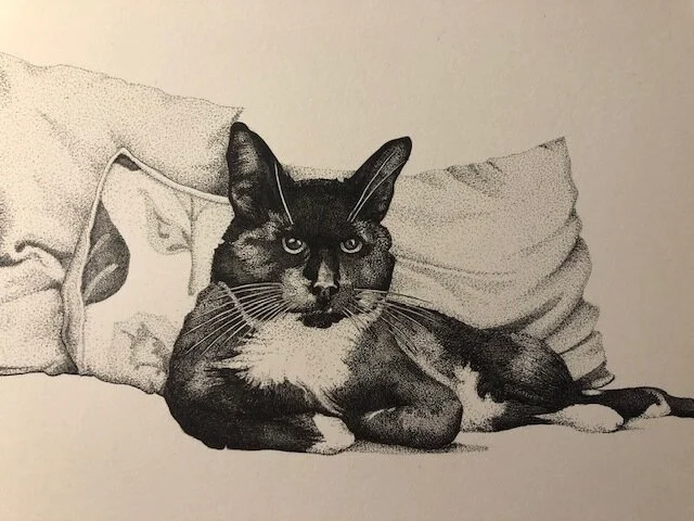 I caught up on a pointillism pet portrait commission and designed this year’s Christmas card... a traditional robin with holly berries, treated to a bit of pointillism magic.